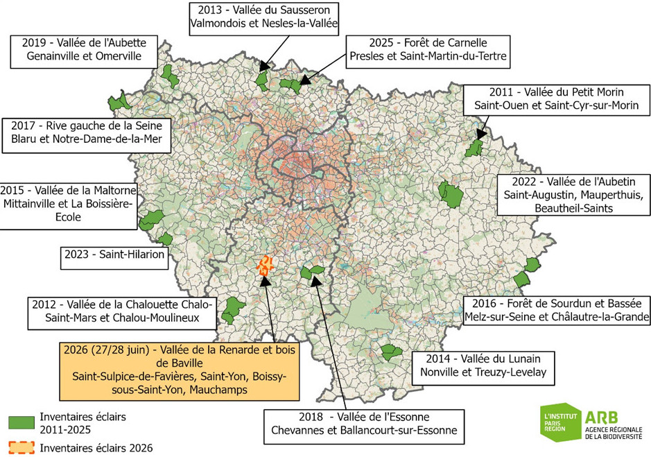 L’ARB organise deux journées dédiées au recensement du patrimoine naturel des communes de Boissy-sous-Saint-Yon, Saint-Yon, Saint-Sulpice-de-Favières et Mauchamps (91). En aval de la vallée classée de la Renarde, et plus largement de la vallée de l’Orge, ces communes sont également couvertes par le Bois de Baville. Entre secteurs plus humides, massif boisé et terres agricoles, ce territoire offre de belles perspectives naturalistes ! Des découvertes ou redécouvertes pourraient également être réalisées dans la Renarde, où la Lamproie de Planer (espèce classée « données insuffisantes » sur la Liste rouge régionale) est anciennement connue.
