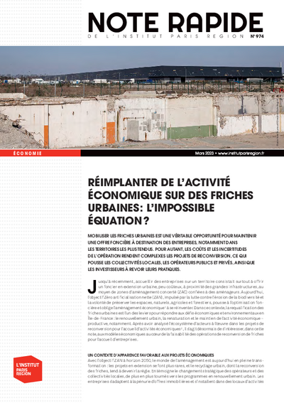 L'objectif de zéro artificialisation nette (ZAN) ainsi que le maintien d'une offre foncière et immobilière pour les entreprises dans les territoires reconfigurent l'aménagement économique. Certaines friches urbaines offrent une occasion privilégiée de redévelopper les activités économiques, et notamment productives. Par son fort niveau de complexité, la reconquête des friches urbaines nécessite de mobiliser un écosystème d'acteurs en pleine évolution.